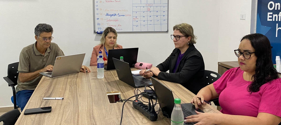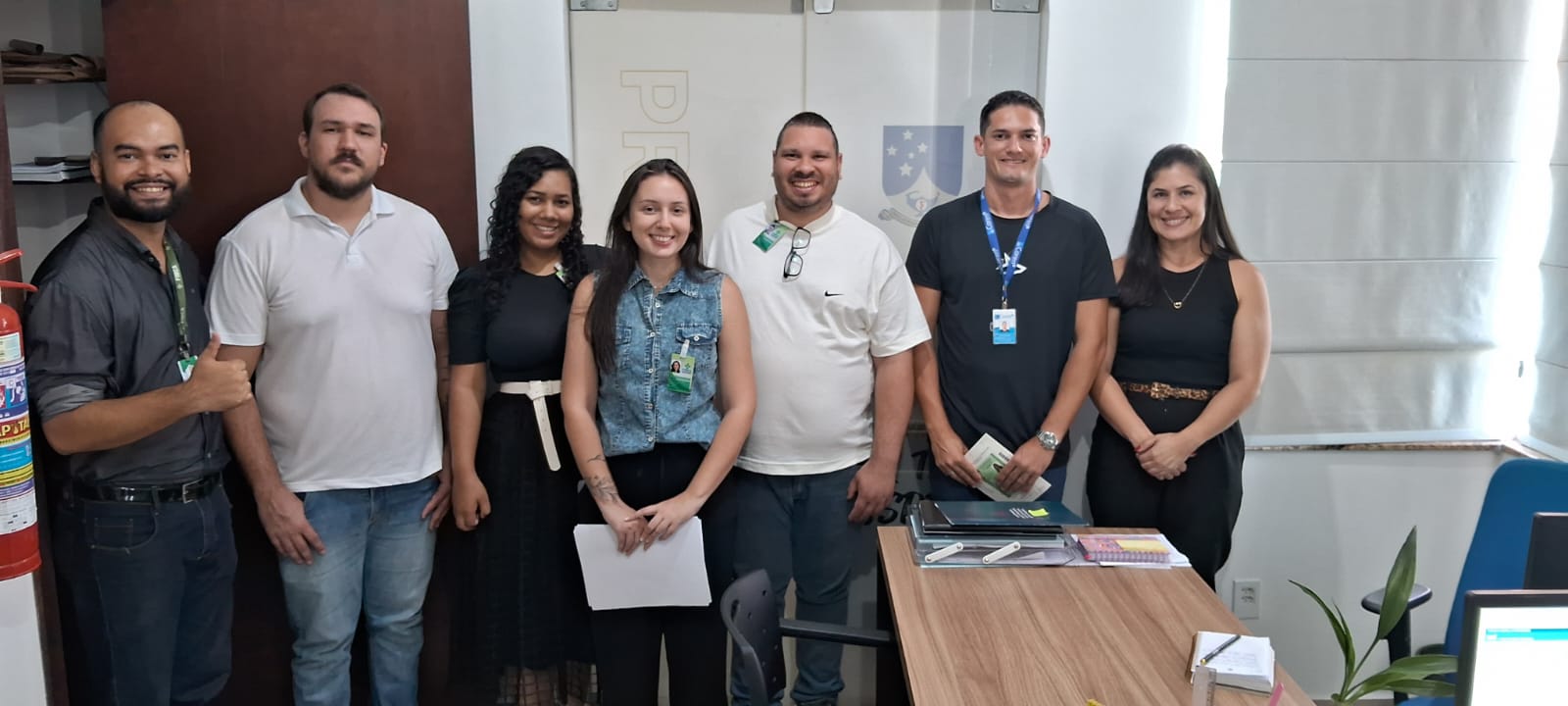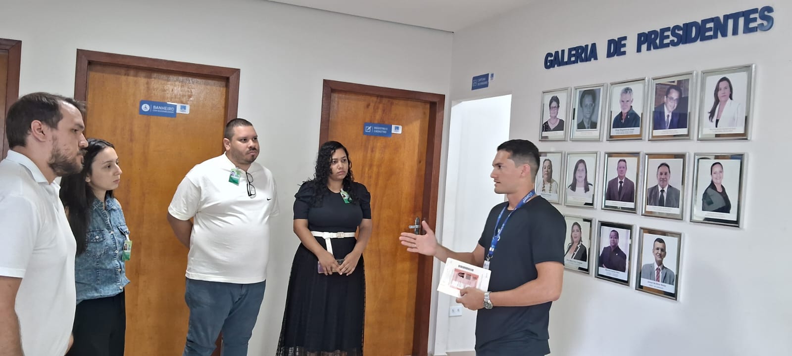 Acompanhados pelo professor Edmilson Junior, recém-diplomado mestre pelo Programa de Pós-Graduação em Prática do Cuidado em Saúde da Universidade Federal do Paraná (UFPR), os estudantes Caio Barbosa, Alax Cunha, Rayane de Oliveira e Ana Clara Oliveira Mozzer, que estão próximos de concluir sua graduação com a colação de grau prevista para o final de janeiro, foram recepcionados pelo enfermeiro Bruno Brumado, chefe do Setor de Registro e Cadastro, e pela chefe de gabinete, Cristina Nascimento.