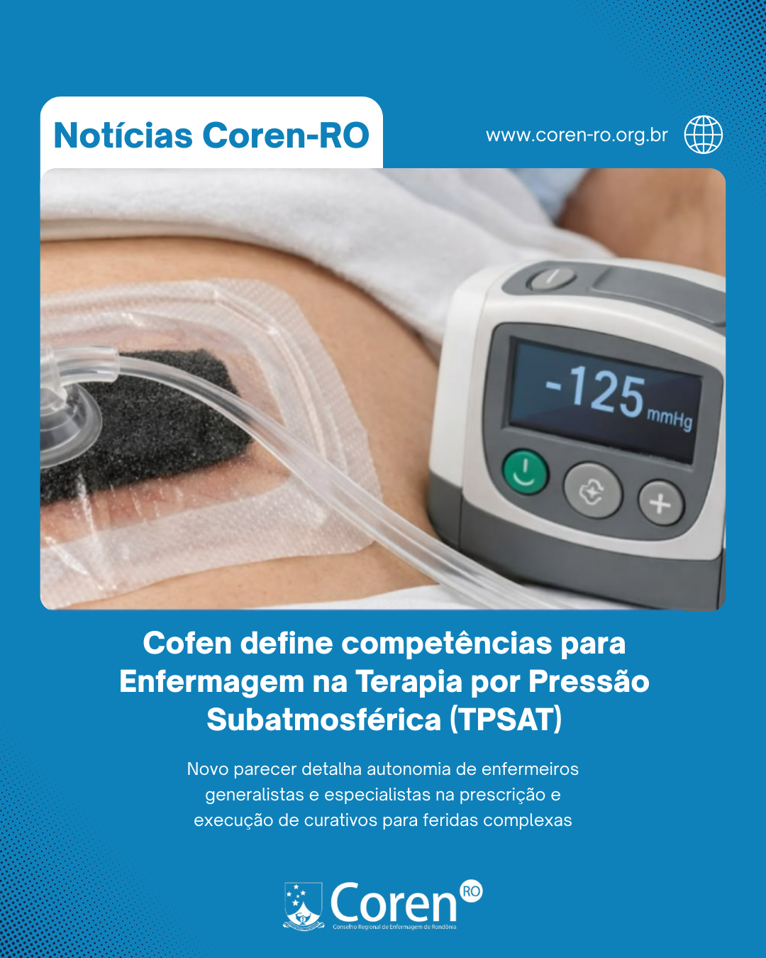 “O tratamento de feridas complexas é atribuição central da Enfermagem. O novo documento reforça que o profissional capacitado tem plena autonomia para decidir sobre as melhores tecnologias adjuvantes, como a pressão negativa”, destaca o texto do conselho federal. Com essa medida, o Cofen assegura respaldo legal para que a categoria continue avançando na assistência de alta complexidade, sempre pautada pela ética e pela formação contínua.