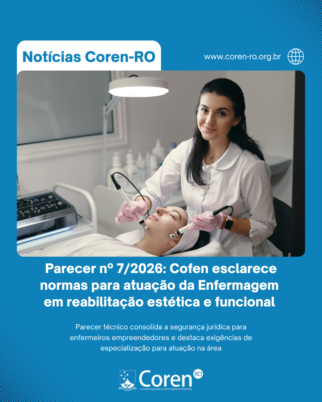 O Conselho Federal de Enfermagem publicou o Parecer nº 7/2026, que estabelece critérios fundamentais para a atuação de enfermeiros em reabilitação estética e funcional. O documento detalha pontos cruciais sobre a autonomia profissional, a gestão de consultórios e as exigências de qualificação para o exercício ético da categoria.