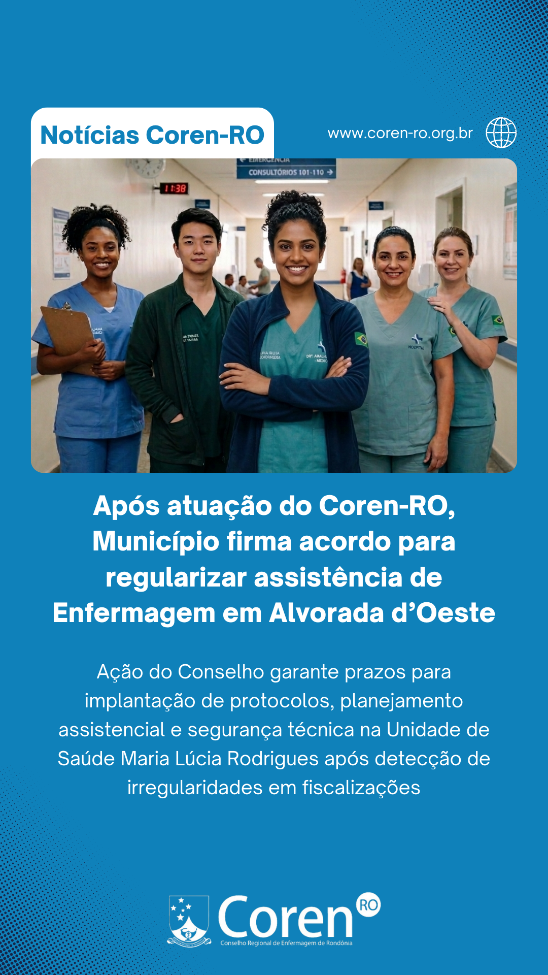 O Conselho Regional de Enfermagem de Rondônia (Coren-RO) obteve uma vitória importante para a categoria e para a sociedade ao firmar um acordo de conciliação com o Município de Alvorada d’Oeste. A medida foi tomada após o Departamento de Fiscalização do Conselho realizar inspeções na Unidade de Saúde Maria Lúcia Rodrigues e constatar vicios organizacionais que comprometiam a segurança da assistência.