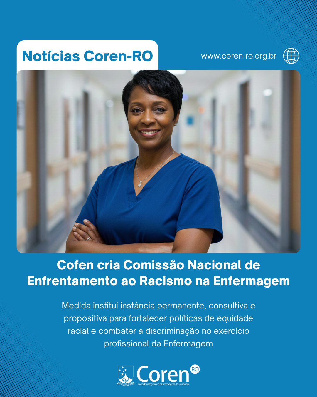 O Conselho Federal de Enfermagem (Cofen) instituiu, por meio da Decisão Cofen nº 280, de 11 de dezembro de 2025, a Comissão Nacional de Enfrentamento ao Racismo na Enfermagem, com o objetivo de fortalecer ações, políticas e diretrizes voltadas ao combate à discriminação racial no exercício profissional da Enfermagem em todo o país. De caráter permanente, a Comissão terá natureza consultiva, propositiva e avaliativa, atuando no assessoramento ao Plenário do Cofen em matérias relacionadas às Políticas de Saúde e de Enfermagem, especialmente aquelas que envolvem o enfrentamento do racismo estrutural e institucional presente nos ambientes de trabalho. Entre as atribuições da Comissão estão a proposição de ações e políticas de fortalecimento do enfrentamento ao racismo na Enfermagem, a sugestão de resoluções ou alterações normativas que contemplem essa abordagem e a busca por mecanismos que contribuam para o aperfeiçoamento da profissão, promovendo equidade, respeito e valorização dos profissionais. A Comissão será composta por cinco membros, sob a coordenação de um(a) Conselheiro(a) Federal ou Enfermeiro(a) designado(a), e seus integrantes serão nomeados por meio de Portaria do Cofen. Os trabalhos deverão ser realizados, preferencialmente, na sede do Conselho Federal de Enfermagem.