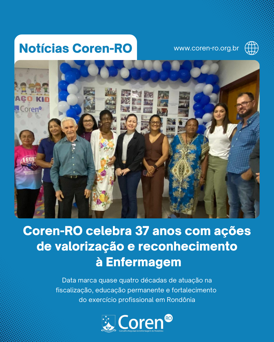 Ao longo de 37 anos, o Coren-RO consolidou sua atuação na fiscalização do exercício profissional, promovendo ações que asseguram uma assistência ética, técnica e segura à população. Além da atividade fiscalizatória, a autarquia tem investido continuamente em educação permanente, capacitações, eventos técnicos e projetos sociais, fortalecendo a qualificação da categoria e ampliando o diálogo com profissionais e estudantes. Para celebrar a data, foi realizado um café da manhã especial na sede do Conselho, reunindo profissionais que estiveram no local para atendimentos e os colaboradores que atuam diariamente na instituição. O momento foi marcado por integração, reconhecimento e valorização daqueles que contribuem para o fortalecimento da Enfermagem em Rondônia. Para o presidente do Coren-RO, Josué, o aniversário representa a consolidação de um trabalho construído coletivamente. “São 37 anos de compromisso com a Enfermagem e com a sociedade. Cada gestão, cada profissional e cada colaborador contribuíram para que o Coren-RO se tornasse uma instituição sólida, atuante e respeitada. Seguiremos trabalhando para fortalecer a profissão, ampliar a qualificação e garantir uma fiscalização cada vez mais eficiente”, destacou.