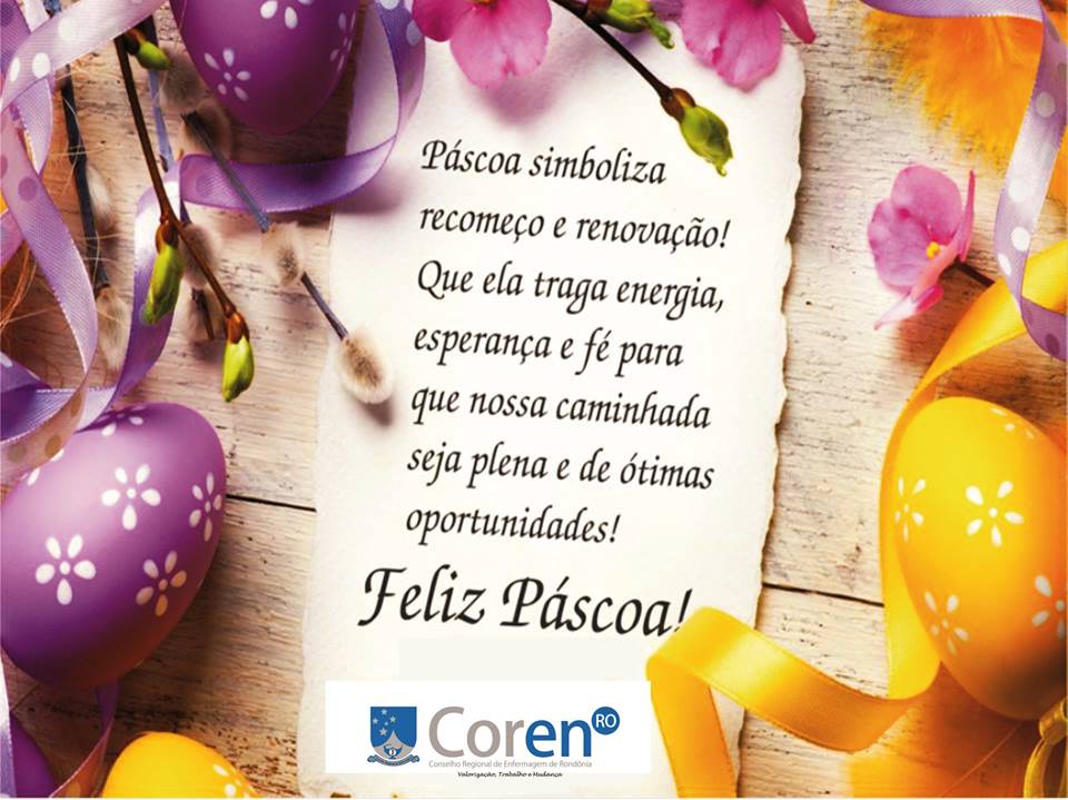 O Conselho Regional de Enfermagem de Rondônia (Coren-RO) deseja a todos os profissionais de enfermagem, colaboradores, parceiros e funcionários, uma feliz páscoa!